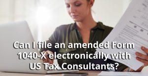 Yes, you can file Form 1040-X, Amended U.S. Individual Income Tax Return electronically with US Tax Consultants to amend your Form 1040, 1040-SR, 1040-NR, or 1040-SS/PR for the current or two prior tax periods. If amending a prior year return originally filed on paper, then the amended return must also be filed on paper. See Form 1040-X, Amended U.S. Individual Income Tax Return: Frequently asked questions for more information. Even if you filed your original return electronically, you still have the option to file a paper version of the Form 1040-X and should follow the instructions for preparing and filing the paper form.